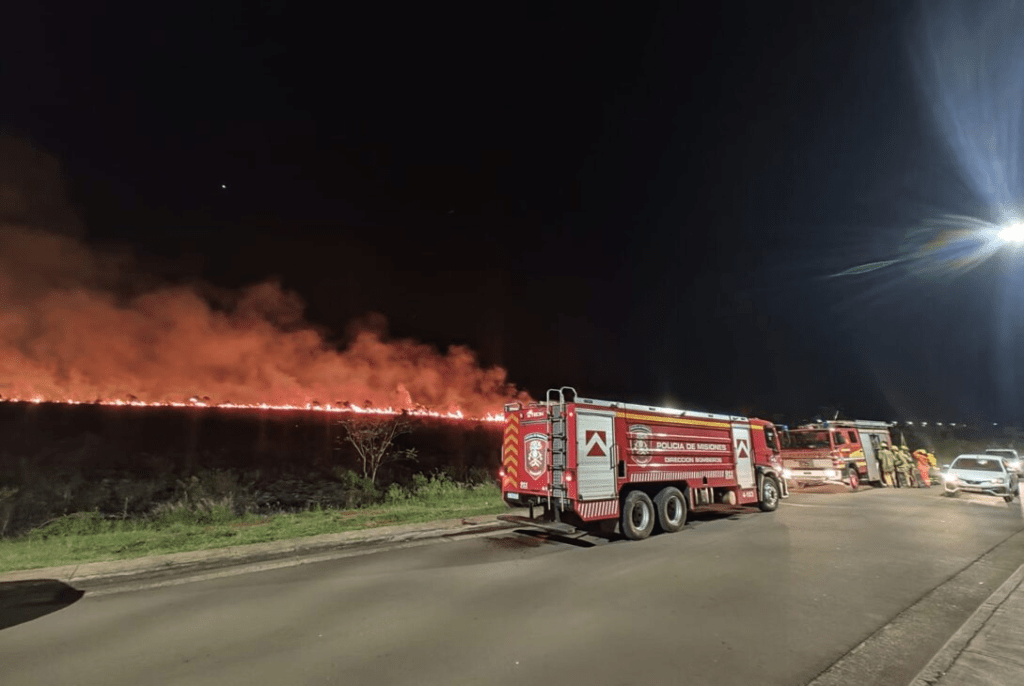Un incendio de grandes proporciones se desarrolla en el acceso Oeste de la Ciudad de Posadas. Al menos dos dotaciones de bomberos, de la Zona Oeste e Itaembé Guazú, trabajan para sofocar las llamas que consumen las malezas que se encuentran detrás del silicon y cerca de los paneles solares que están por el puente Chacabuco.