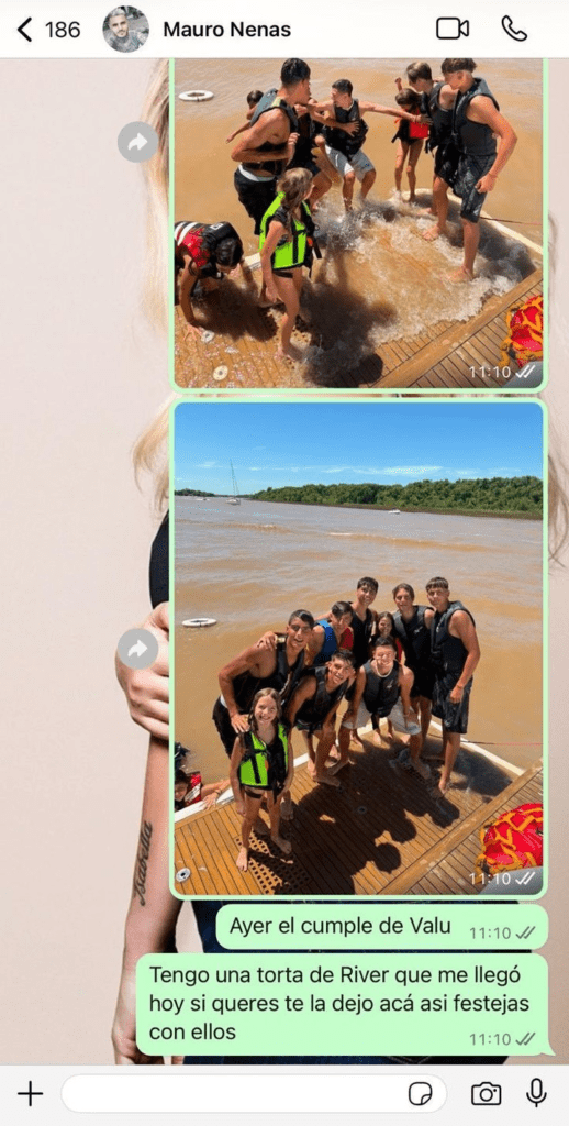 “Mau, buen día, te estamos llamando avísame cuando puedas. Estamos desencontrados. Con el verano y la piscina se duermen temprano las nenas. Si podes antes de las 8 llamarlas mejor. Besos avísame estoy disponible si queres venir a ver a los 4 porque ayer viajó Valu. Te dejo la casa y están mis empleadas por si necesitas ayuda”, escribió Wanda, intentando conciliar con su ex marido.