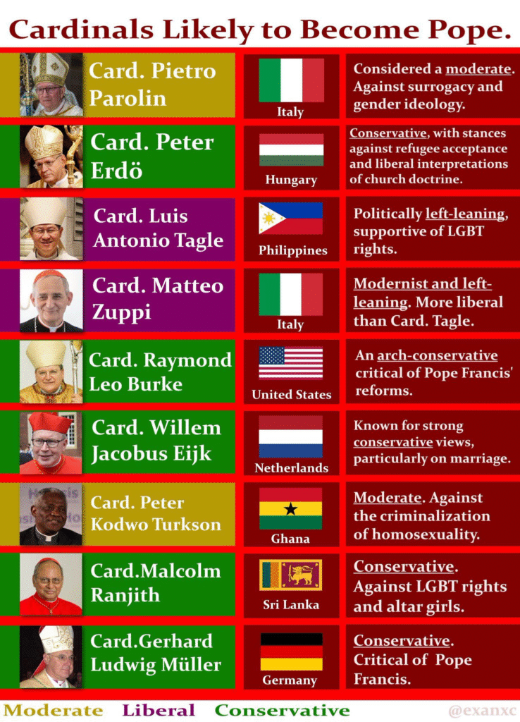 Un mosaico de candidatos en el horizonte de la Iglesia Católica tras el fallecimiento este lunes 21 de abril de Jorge Bergoglio.
