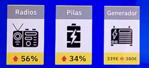 Ya cuando la Unión Europea informó del kit de emergencia.A pesar de la incredulidad de la gente ya comenzaba el aumento,ahora que el apagón en Europa tambaleó a la gente,y ahora sí tienen temor por lo que pueda ocurrir.Comenzaron las compras masivas de éstos productos,entre otros por lo que pueda ocurrir en cualquier momento.