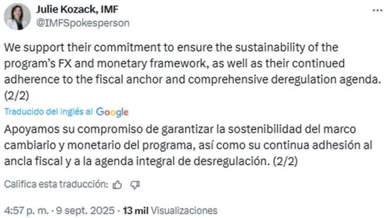 La vocera del FMI, Julie Kozak, afirmó que «el personal del FMI colabora estrechamente con las autoridades argentinas» para mantener el plan vigente.