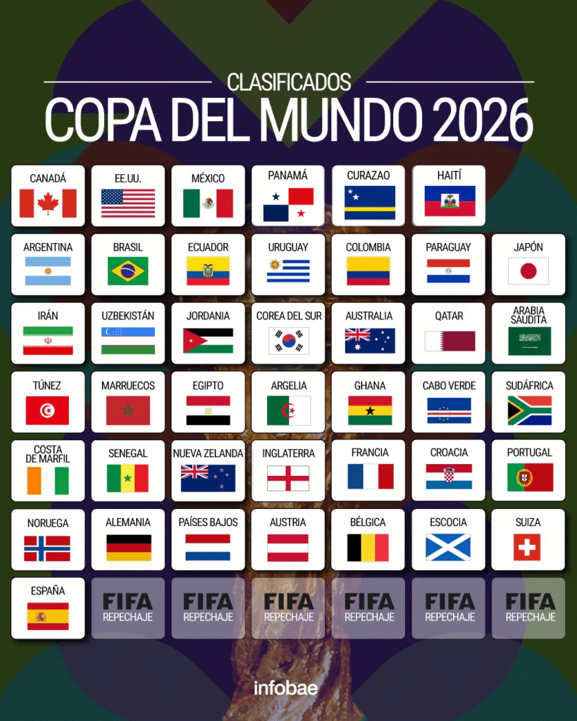 Por otro lado, el sorteo de la fase de grupos del Mundial 2026 que se desarrollará el próximo viernes 5 de diciembre desde las 12 (hora local) en el Kennedy Center de Washington DC tendrá 42 selecciones confirmadas y 6 participantes aún inconclusos que se develarán recién en marzo del 2026 al finalizar las distintas tandas de Repechaje.