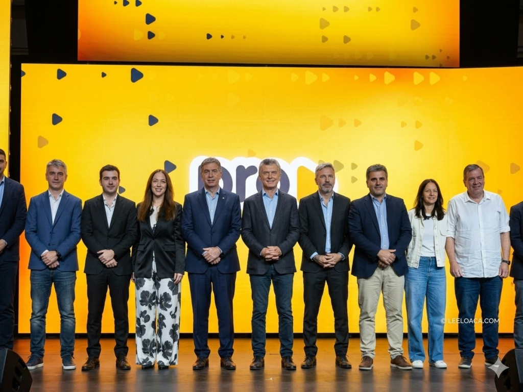 UNIDAD ESTRATÉGICA. Los principales referentes del PRO se mostraron juntos en un escenario que marca el inicio del rearmado nacional. Con la mira en el 2027, el partido busca recuperar su identidad y fortalecer sus bases. (Foto: Red ACA / Leeloaca)