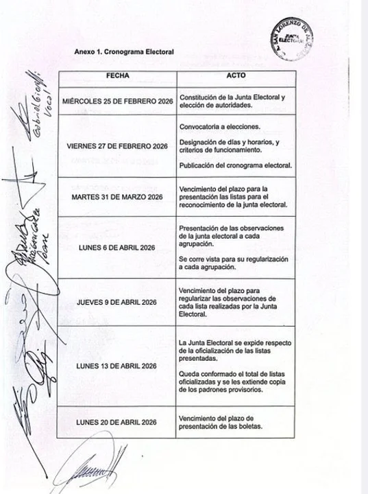 La Junta Electoral de San Lorenzo confirmó el cronograma de las elecciones para la renovación de autoridades y los comicios serán el sábado 30 de mayo de 2026.